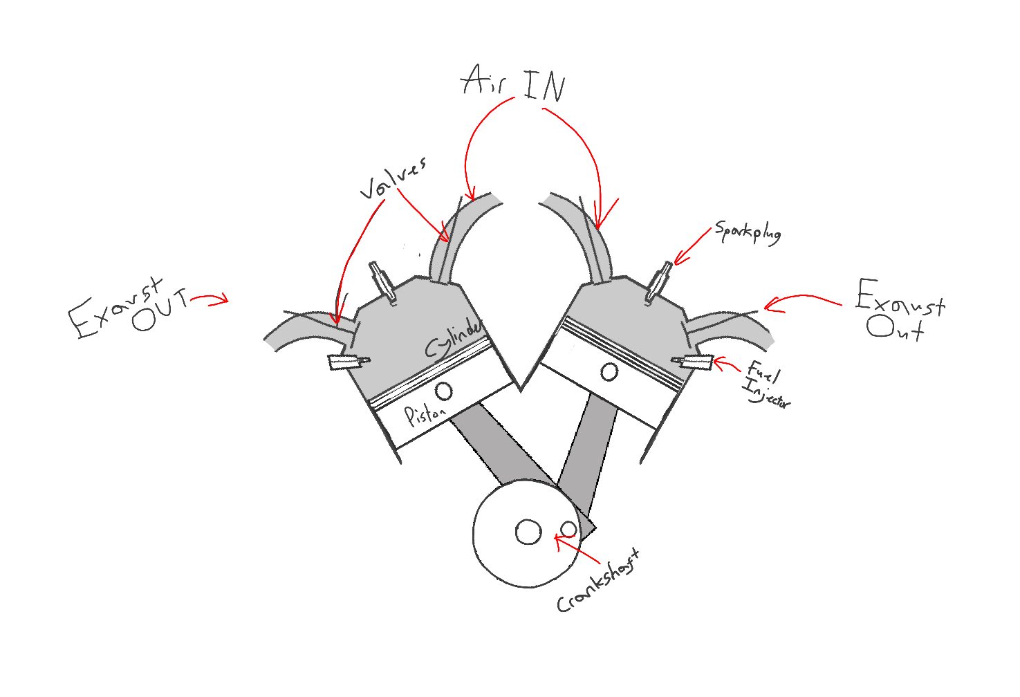 Having a good basic knowledge of engines and how they work before this assignment id placed myself in a healthy position to complete this assignment, however further research was still done in order to expand my knowledge of the subject further and allow me to make a slightly more accurate demonstration of how it should move, what pushes what and what causes speeding up and slowing down.