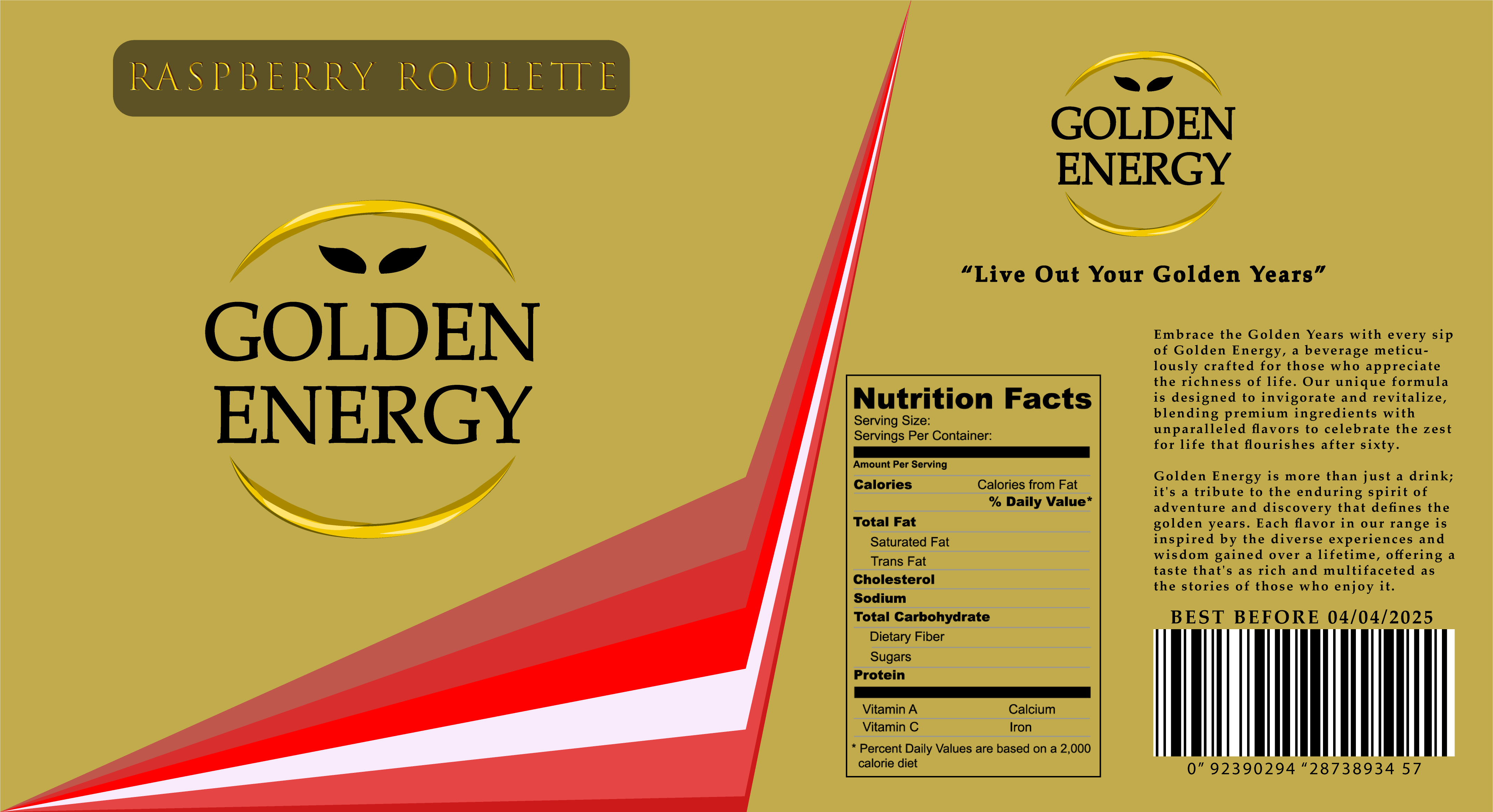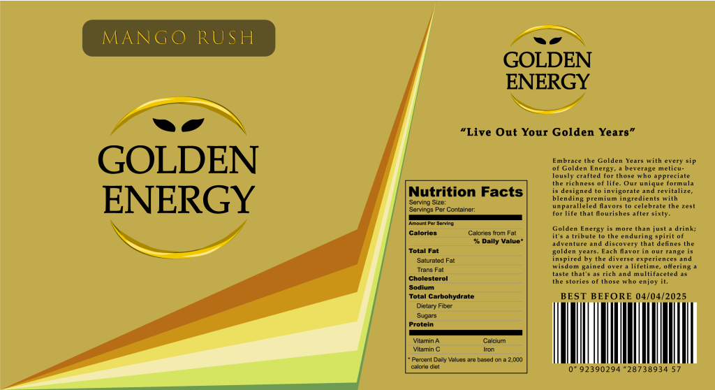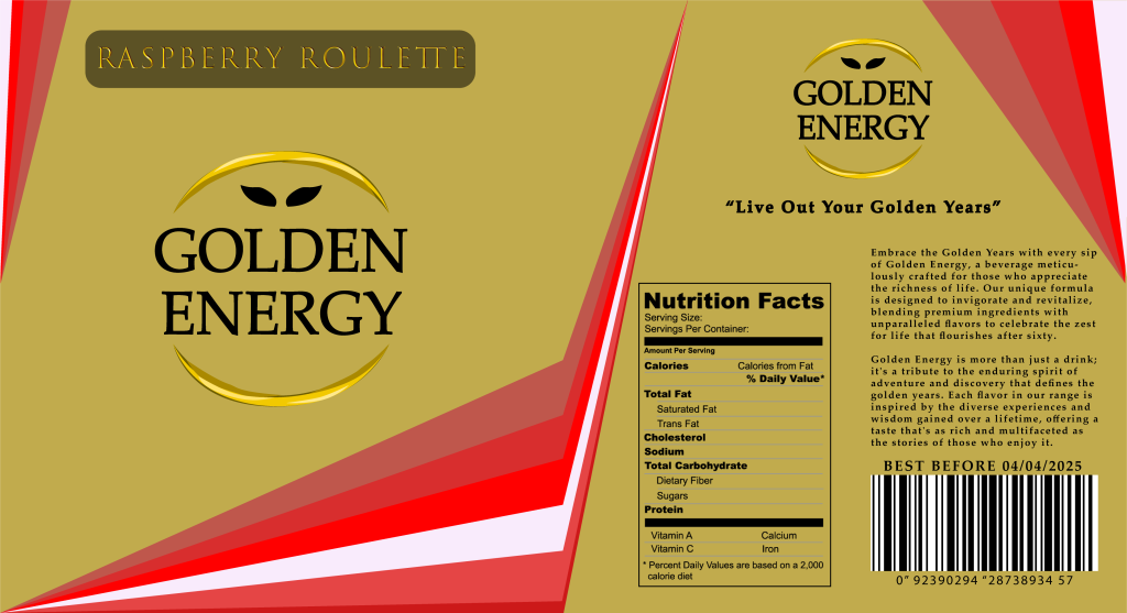 I also created a few taglines for the brand (“Energise Wisely, Stay Golden”, “Live Out Your Golden Years”) Designed to put more emphasis on the target audience being over 60s and that it is meant to help the older generations feel young again. This could even be explored further into a similar style advert as “redbull gives you wings” except the drink makes the person look and feel younger after drinking (even though it actually doesn’t it would just make them feel more energised to do more).