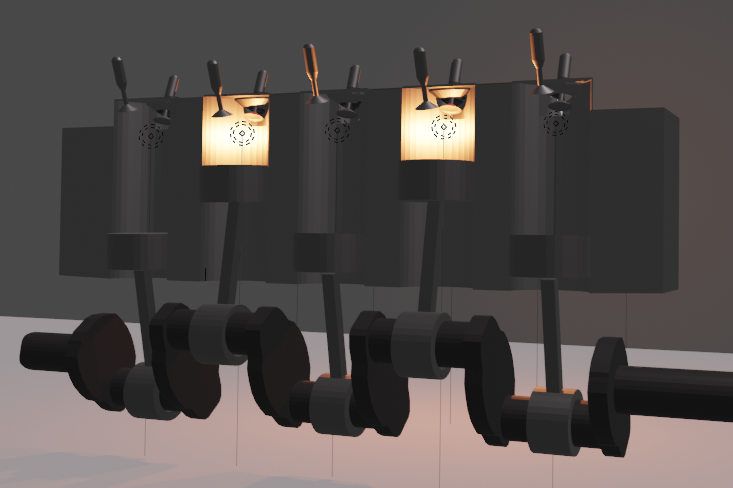 In order to taylor my animation to his theory of Small Multiples I panned the camera across the different valves showing the timings and explosions for each piston activation, these in turn spun the crankshaft further keeping its momentum for the next revolution.