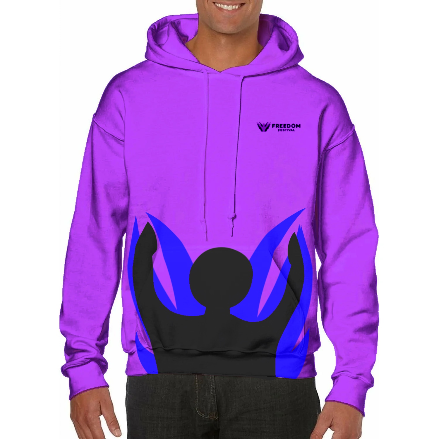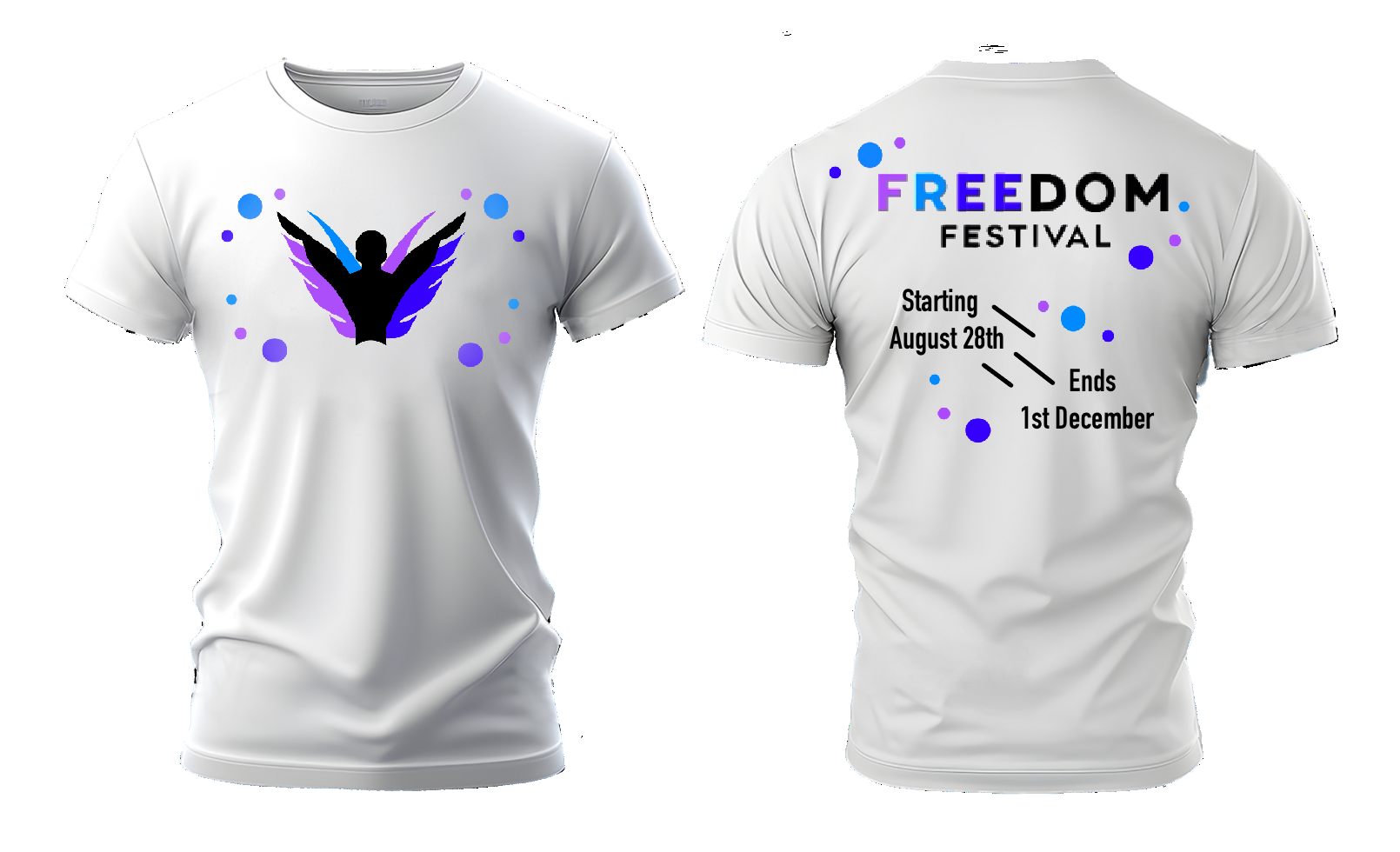 The main merchandise for any event or brand is always the shirts and hoodies, these are often the most popular and easiest to spot types of branded items and therefore its imperative for the design to stand out and empower the visibility of the freedom festival when its seen worn in public. These items should get people interested enough that they ask what the festival is and maybe even how the could get involved. For the actual design of the shirts i went for a similar concept to band t-shirts opting for a logo design on front with information along the back to keep it simple yet interesting enough to peak attention. Whereas for the hoodie design i went for a more bold approach opting for a pure design based product with only a small logo in order to promote wearers being asked where they got the hoodie from and tell them more leaning once again into word of mouth advertising as a powerful way to get the event talked about around the area.