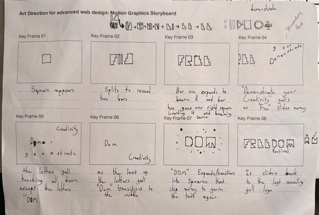 One way to incorporate animations and graphics in your website is with the introduction to the website also known as the landing page. Here is a brief animation storyboard that could be used in this type of context. With this type of entry to the website being a small animation, it will definitely become memorable for the user as most web pages go straight into the homepage using that as their landing page.