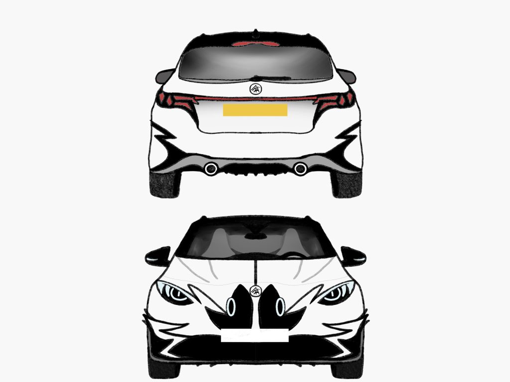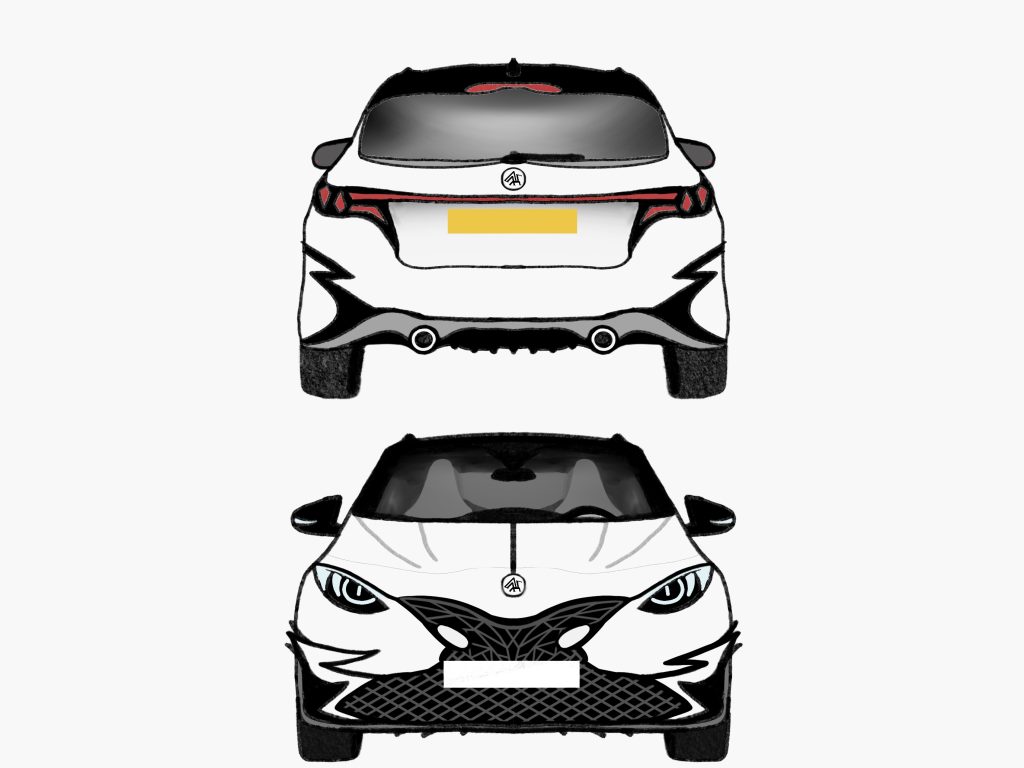 As I started to get a clearer picture of the car brand and what the brand meant i decided to start work on my first draft for the cars actual design. As I mentioned previously the car I will be designing in particular is a luxury hatchback, competing with the BMW 1 Series, Mercedes A-Class and Audi A3 therefore it has to match up to these luxury brands in terms of both styling and luxury. The main criteria I was aiming to fulfil with this sketch was creating a face for the brand, recognisable, yet also different to other cars on the market. One of the main parts of this is light design, as this is the only thing you would really see of the car in darker conditions, it’s important to be recognisable purely by this alone, this is why light design is incredibly important to a cars overall design and value. So I started with the lights attempting to make them reptilian in nature in order to match up to the inspiration (dragons) i also wanted the ‘face’ to be quite angular, with sharp edges, maintaining that aggressive look dragons are known for.