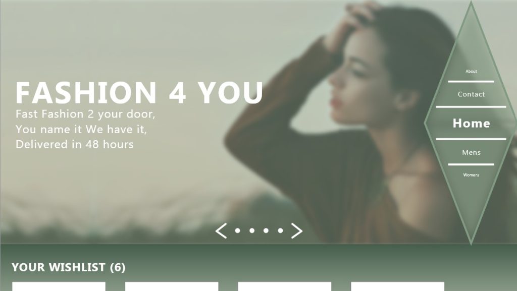 Due to Avant Garde being all about breaking the norms i decided to change up the menu to a diamond design that i imagine would animate so the page your on is central, rather than the stereotypical top of page menu design.