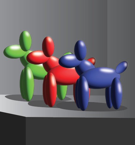 For the final design, I wanted to reflect one of Jeff Koons’s most famous artworks in the Kitsch design style. I wanted to have a similar effect to the original but with a different meaning, so decided to go for the colours red, green, blue in order to imitate the pixels on a screen creating the final image of a single balloon animal commenting on how we see everything through screens now. Which in my opinion is a very fitting, over-the-top way of portraying this idea making it perfect for the Kitsch style of art.