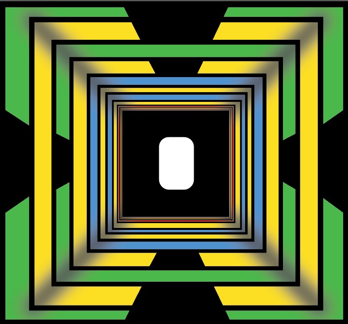 Moving Back to Maximalism this piece by Peter Nagy is an optical illusion, showing an impossible 3-dimensional space with stairs, and columns leading up to what seems like where you started. the use of patterns here continues as he uses them to represent the flooring, mixing in the occasional blue square in seemingly random places potentially to add to the confusion effect that I believe he is trying to provoke with this illusion piece. His use of colour is widely different from the first example of maximalism going with more consistent shades of blue theme as opposed to mixed-coloured patterns.
