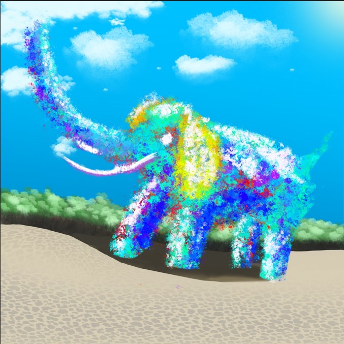 Moving on to Kitsch Design I wanted to reinterpret the original designs of Jeff Koons, putting my own spin on them since I can of course only work digitally in order to reflect his style of art. This particular piece is inspired by Jeff Koons’s “Puppy” but the large dog has been reinterpreted into a small elephant, I did this in order to keep the bold, subverting expectations idea behind the original concept. In order to create this effect I tried to introduce scale by scaling up the patterns on the ground.