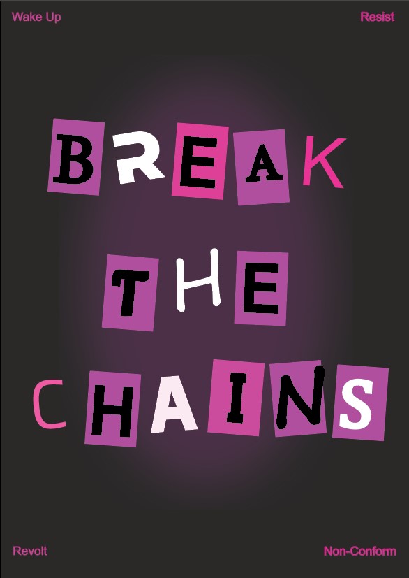 For my final Punk Design reflection, I wanted to use the collage text effect. For this particular design, I went with the general “break the chains” message as it fits the punk aesthetic along with the bold pink lettering style to promote the contrast between what’s considered normal when compared to punk design.